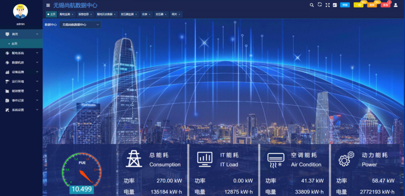 7、分项统计总能耗、空调照明能耗、IT能耗(列头柜/母线槽)等,计算能效PUE值,提供用能调整依据。