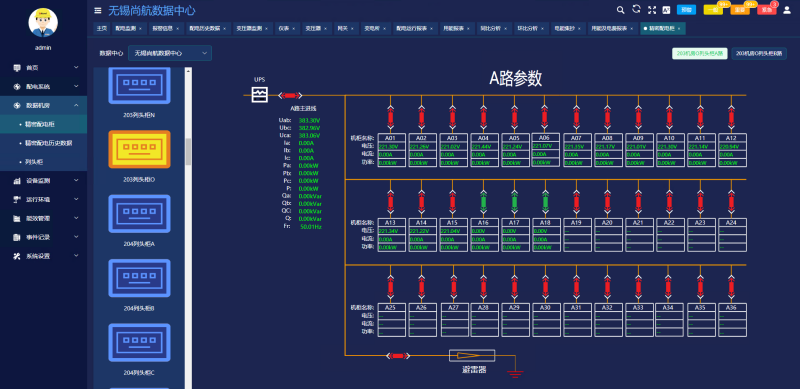 1、对数据中心配电系统进行实时监控,包括市电进线、柴发运行状态油箱油位、变压器、中低开关柜电气参数等;