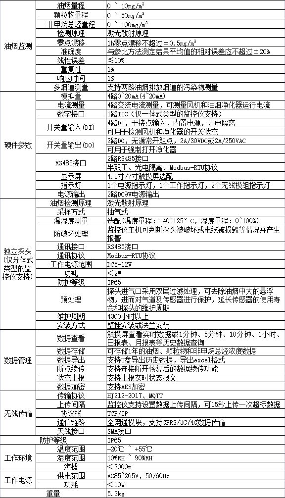 ACY100型油烟浓度在线监控仪技术参数: