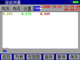 列表:以数字列表方式显示各相电压、电流的谐波失真测量结果。如图2-1。