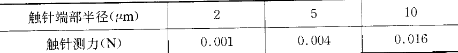 为确切反映被测表面粗糙度,要求触针与被测表面可靠地接触。如果测力过小难以达到此目的,会带来一定的测量误差。但如果测力较大,则既易划伤被测表面,也易使触针端磨损。所以测力大小必须适当二另一方面,测力大小的.选择还与触针端部圆弧半径大小相关。触针圆弧半径较大时,选择的测力可适当大些;触针圆弧半径较小时,选择的测力必须相应减小。一般对应关系见表4.2.3。