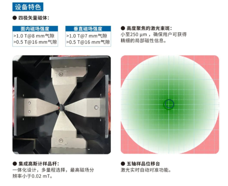 产品由本公司自主研发,稳定性强、可扩展性良好,提供定制服务;与同行类似设备相比,磁场更大,精度更高,无需更换光路即可实现面内和垂直磁滞回线测量,激光自动对准,高度智能的软件支撑。。设备性能