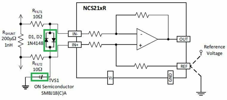 这些器件可能会在分流器上以非常高的水平放大小电压和噪声,这可能会导致电流测量误差。