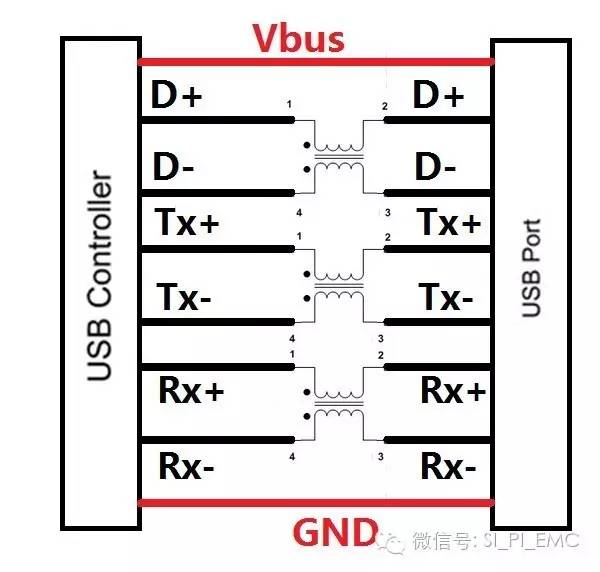 USB3.0又称为SuperSpeed USB总线,与高速(High Speed)USB2.0总线相比,为了达到总线对USB2.0/1.1/1.0的向下兼容,总线保留了USB2.0信号线(D+,D-,Vbus,GND),同时增加了两对USB 3.0超高速差分信号(SSTX+,SSTX-,SSRX+,SSRX-),一组差分对用来发射信号,另一组接收信号,从而实现全双工传输,USB3.0信号传输速率达到5Gbps;电流最大达到900mA;在EMC方面,为了达到降低EMI的影响,增加了SSC(扩频时钟)功能。
