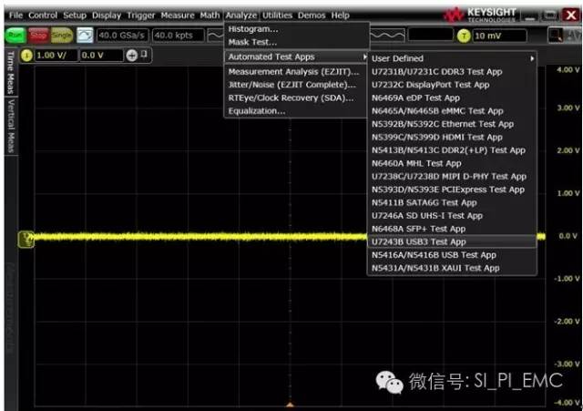 示波器对于USB3.0这类接口的测试都有非常完善的测试解决方案,这些方案都是标准流程化的,只要进入到软件测试界面即可按照流程图一步一步的往下进行测试。下面是测试时的相关设置和注意事项: