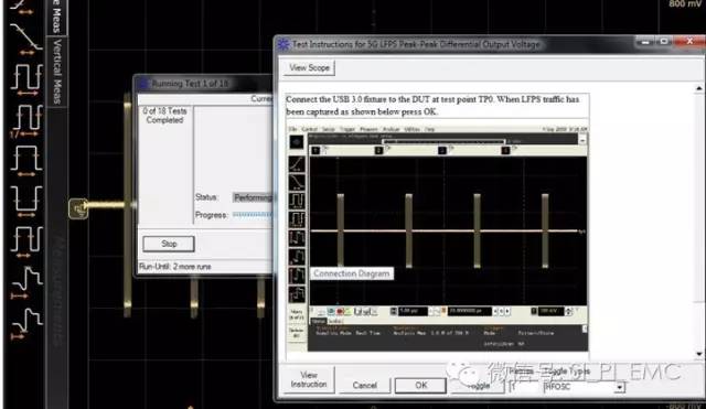 将被测件接入夹具,观察示波器是否捕捉到参考波形,如参考波形和示波器显示波形相同,点击成这两个操作后,点击OK