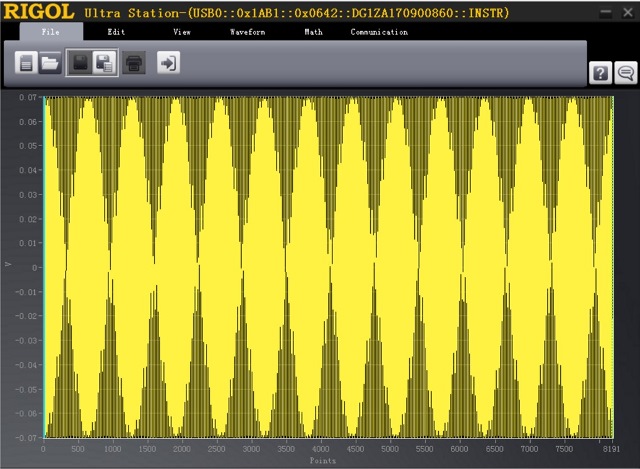 图 1:DDS ARB 发生器产生 400 个周期的正弦波,使用 Rigol 的 UltraStation 软件显示。