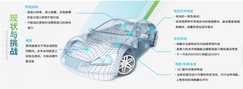 中国北京2022年4月2日 – 泰克致力于成为智能汽车测试的领跑者,走在行业发展趋势前沿,聚焦智能座舱、自动驾驶和汽车三电领域,持续投入和专注于智能汽车测试的重要测试点,为客户提供安全、可靠、高效的智慧出行测试解决方案。一张图显示当前变革中的汽车行业面临的现状与挑战。