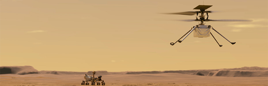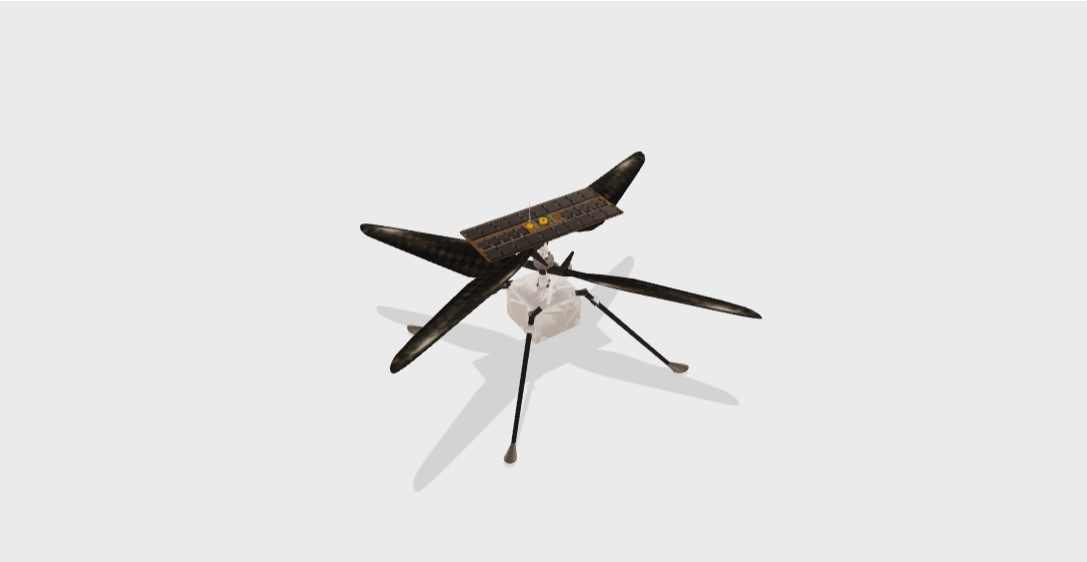 毅力号2020火星探测机器人腹部携带一架4磅重的太阳能直升机前往火星。双旋翼以每分钟2400转的速度向相反方向旋转——比地球上的直升机快很多倍。这架微型直升机需要产生足够的升力,才能在火星稀薄的大气层(仅为地球的百分之一)中飞行。-130℉的低温促使Ingenuity突破极限,安全经历火星上的夜晚。