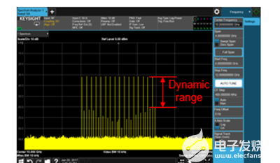 I/Q 调制器中的每个组件都会产生诸如增益不平衡、时序偏斜、正交偏斜、直流偏移和相位噪声等误差(虚拟:从 I/Q 调制器中弹出这些误差)。为了可视化调制器误差,我们使用基带发生器创建一个 16 多音信号作为示例。传统 I/Q 调制器的输出信号会产生非线性失真,从而降低整体信号动态范围。图 2 显示了由调制器和 RF 部分引起的 16 个音调之间的互调失真。对于调制信号,失真会降低信号质量并导致测量失败。因此,最大限度地减少信号生成的失真对于准确表征宽带射频组件和评估接收器的性能至关重要。