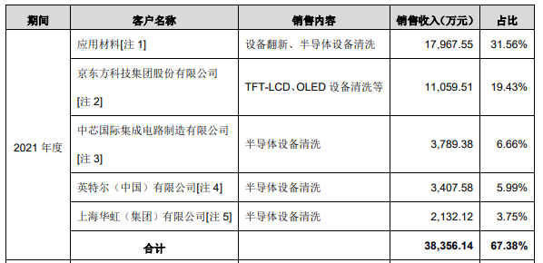 前五大客户:京东方、中芯国际、英特尔等大厂