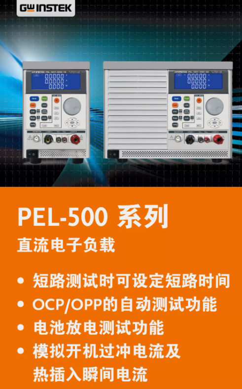 PEL-500 系列单通道电子负载,共有5个型号分别提供0~80V/0~500V电压操作范围及250~700W的功率操作范围。可以应用于研发、品管、ATE系统及生产测试,包括电压源/电流源测试、开关电源瞬时响应、定电压模式供限流测试及模拟电池、电池放电测试、电池充电测试。