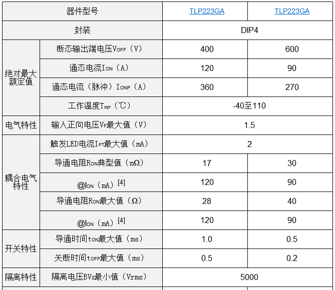 中国上海,2022年1月18日——东芝电子元件及存储装置株式会社(“东芝”)今日宣布,推出两款断态输出端额定电压分别为400V和600V的光继器---“TLP223GA”和“TLP223J”。这两款器件都具有低输入电流以及优化的开关特性,并采用DIP4封装。产品于今日开始支持批量出货。
