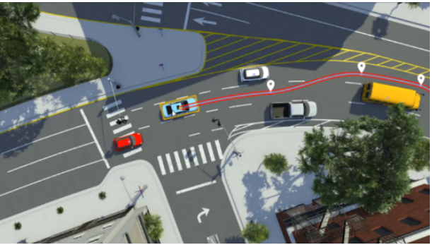 图注:使用RoadRunner Scenario以交互方式设计用于仿真和测试自动驾驶系统的场景(来自MathWorks发布的2022a新版)
