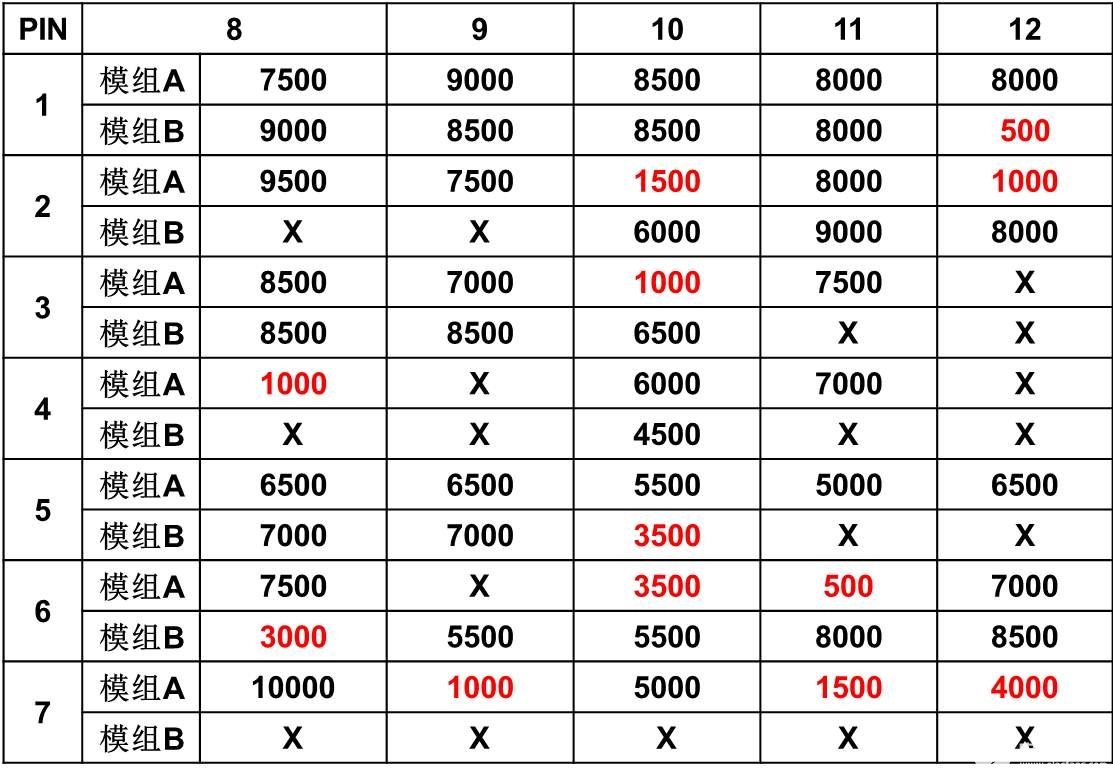 我们选取一个不良样品,正表笔接1脚,负表笔接12脚,即将K1反接,发现其存在4mA的反向电流。又将正表笔分别接8、9、10、11脚,负表笔接12脚,1A、2A、3A、4A 均能发光,也就是说,将K1反向分别和1A、2A、3A、4A串接时, 1A、2A、3A、4A均能发光,进一步说明该样品K1异常,反向能导通。