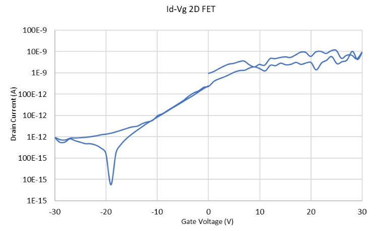 使用传统SMUs测得的2D FET的有噪声的Id-Vg磁滞曲线。