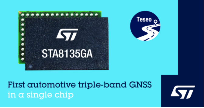 作为意法半导体Teseo V产品家族新成员,STA8135GA 是世界第一款片上集成三频位置测量引擎的车规GNSS(全球导航卫星系统)接收芯片,此外还集成了标准的多频位置-速度-时间 (PVT)和航位推算功能。