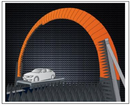 为了描述天线的特性,有必要测量其辐射图,以确定它的辐射情况和方向。为了快速获得可靠的三维辐射模式,天线性能测试正在转向空中(OTA)测试解决方案,以便在系统层面获得快速和可靠的测量。对于OTA测量,测试是通过无线电通信测试仪进行的,并在消声室中使用近场测量方法,以阻止外部电磁场并模拟现实和复杂的射频场景。为了解决测量高度连接的车辆的复杂性,MVG提供了OTA测量解决方案,专门用于全面验证汽车无线性能。由于有了高精度的定位系统(控制器和转台),可以进行连续的即时测量。这允许快速、准确地测量指向性、增益和效率。