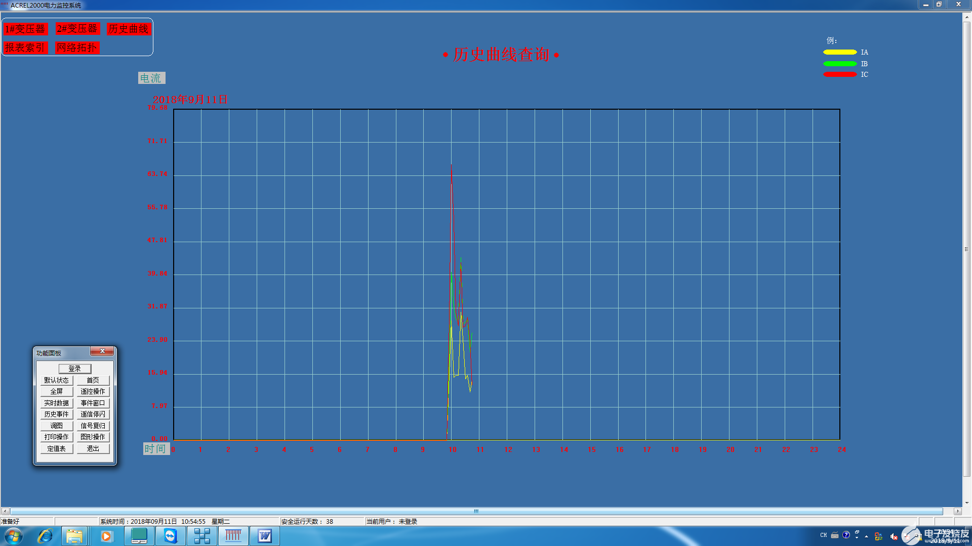 历史曲线查询功能,主要对低压配电各回路的历史电流趋势曲线进行查询。