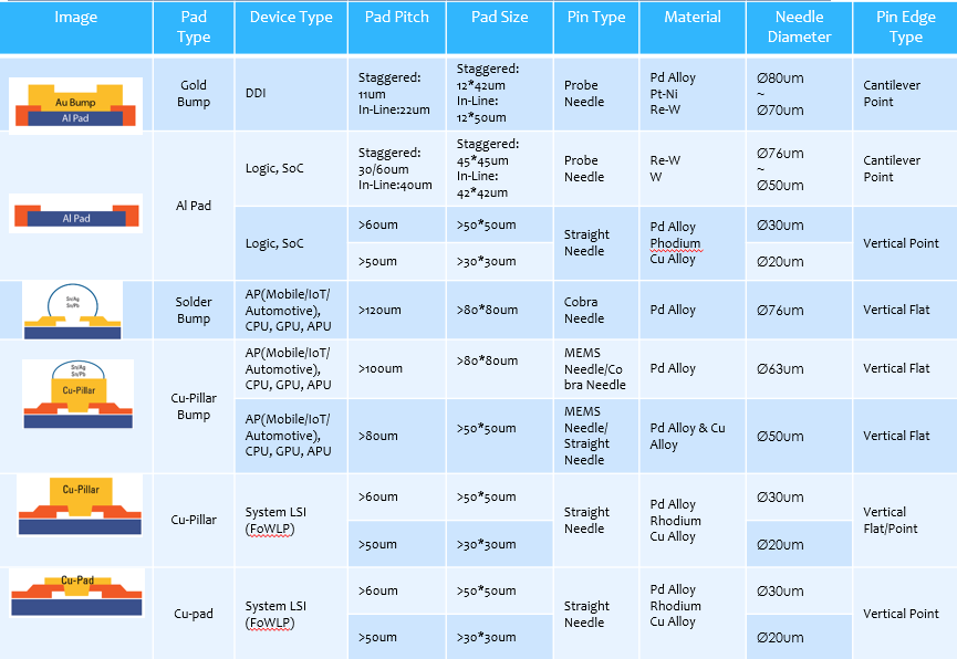 在晶圆测试领域,泽丰半导体基于不同的应用场景提供Cobra, Straight Needle以及