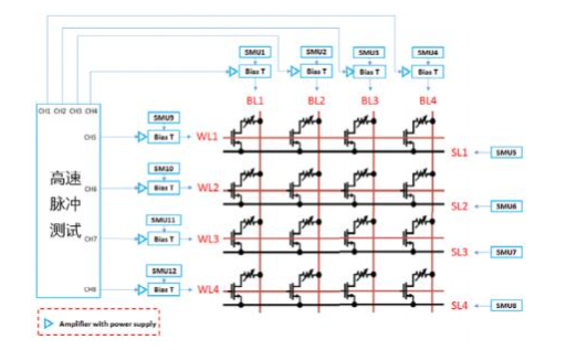 基于交叉阵列的神经网络单元研究将是未来相当长时间内的重要方向,神经网络最基本的操作是在所有WL上同时加不同幅值的电压,同时在所有BL上读取电流,需要输入多通道的模拟电压值,同时能够多通道同时读取模拟电流值。目前类似的过程都是靠电路或者FPGA完成的,灵活性差、周期长,不适合研发。通用阵列测试设备将大大提升研发效率。