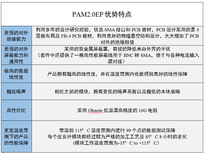 作为皮安计模组的进阶版产品,PAM2.0EP拥有更强的性能特点:P