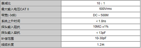 符合CAT II 600V(CAT III 300V)标准,该绝缘示波器探头满足手持示波表的需要,可用为500MHz高频测量,充分绝缘,符合人体工程学设计,握感舒适。CE和UL认证,适合1MΩ阻抗输入的示波器。