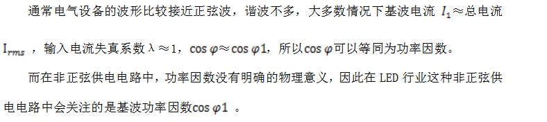 以上关系只适用于“正弦波电路中”, 而如果在非正弦波电路中,功率因数与总谐波失真及基波功率因数有关,如在LED灯电路中。