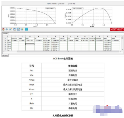 ACS Basic软件包含太阳能电池测试专用模块,节省测量时间,提高测试效率。ACS Basic是半导体参数测试软件平台,主要用于封装组件和分立器件特性分析,支持吉时利2400系列,2600B系列及大功率2650A系列SMU源表。其内置的太阳能电池模块可以自动计算出太阳能能电池的典型参数,如ISC(短路电池),VOC(开路电压),Pmax(最大功率点),FF(填充因子)等,用户无需编程直接获得参数结果,节约测量研发时间。