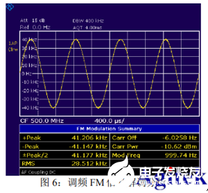 如图 6,显示的是 ZVL 的信号分析功能测量调频 FM 信号的解调结果,上部分显示的是调制信号对时间的关系。