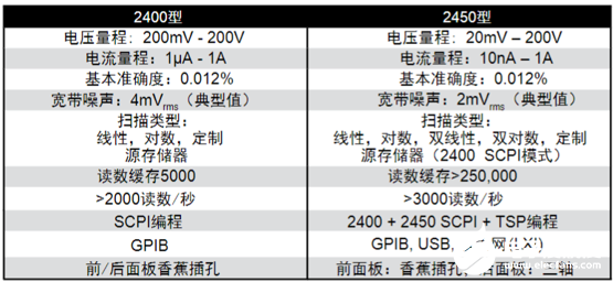 二、吉时利源表2450主要指标: