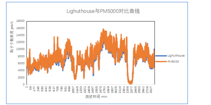 PM5000与Lighthouse 设备测量值对比图表