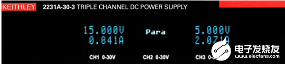 • 可以同时查看所有通道的电压和电流读数;2231A-30-3型电源显示屏同时显示来自所有3个输出的读数。