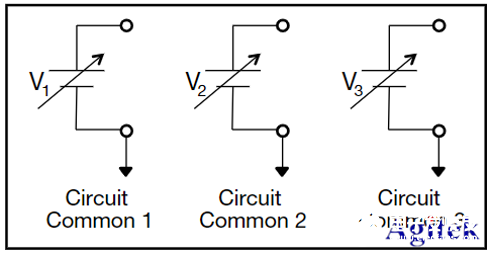 每个输出都可以为不同接地基准的电路供电。每个输出的低连接都不与其他输出相连。这意味着,一个电源可以测试3个不同接地基准上的3个独立电路,或者为变压器电路或光隔离电路供电。此外,所有输出都参考接地,因此2231A-30-3型电源可以为浮动电路和接地电路供电。