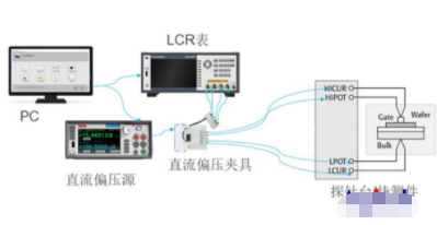 MOS电容的C-V测试系统主要由源表、LCR 表、探针台和上位机软件组成。LCR 表支持的测量频率范围在 0.1Hz~30MHz。源表(SMU) 负责提供可调直流电压偏置,通过偏置夹具盒CT8001 加载在待测件上。以PCA1000LCR表和吉时利2450源表组成的C-V 测试系统为例,可以满足精确测量的要求: