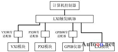 在本文研究的多总线融合的自动测试系统中,由于VXI、PXI、GPIB模块的触发信号电平与LXI 的LVDS(LowVoltage Different Signal低电压差分信号)的触发电平不相匹配,系统采用不同总线触发信号适配器,将LXI TRIGGERING的LVDS信号转换成与VXI、PXI、GPIB等模块触发相适应的电平信号。