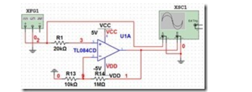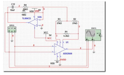 要求所采用的偏置电流:<2nA。TL084CD的偏置电流为30pA,满足偏置电流小于2nA的要求。