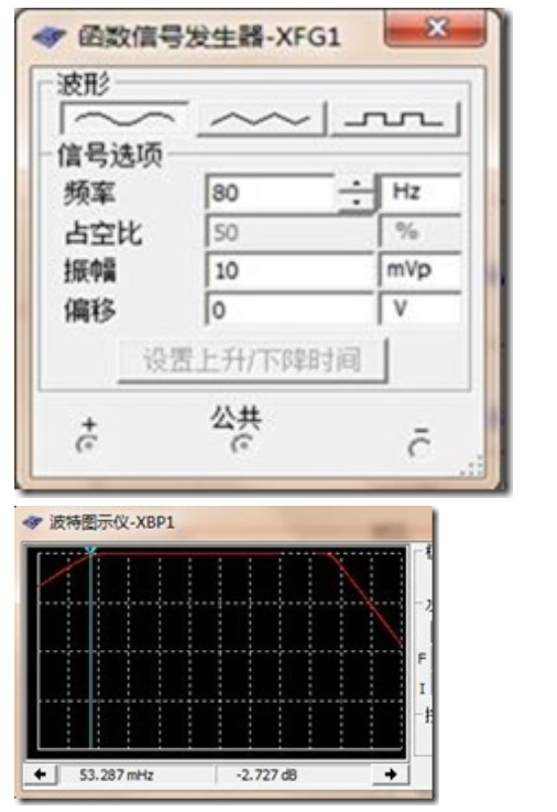 输入:幅值为10mv,频率为50Hz的正弦波,波特图如下图所示: