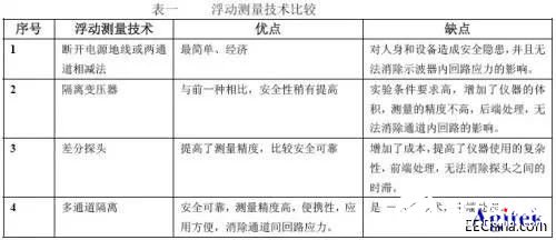 为达到差分测量的目的,现有技术有隔离变压器、差分探头和隔离通道等。这几种技术的优缺点比较可见表一。