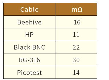 我很高兴发现了劣质BNC跳线,也很高兴看到Beehive探针电缆、HP和Picotest电缆的性能这么出色。亚马逊购买的这根电缆屏蔽性能不如HP、Beehive或Picotest,并且其直流电阻也表明其屏蔽层与连接器的焊接不良。