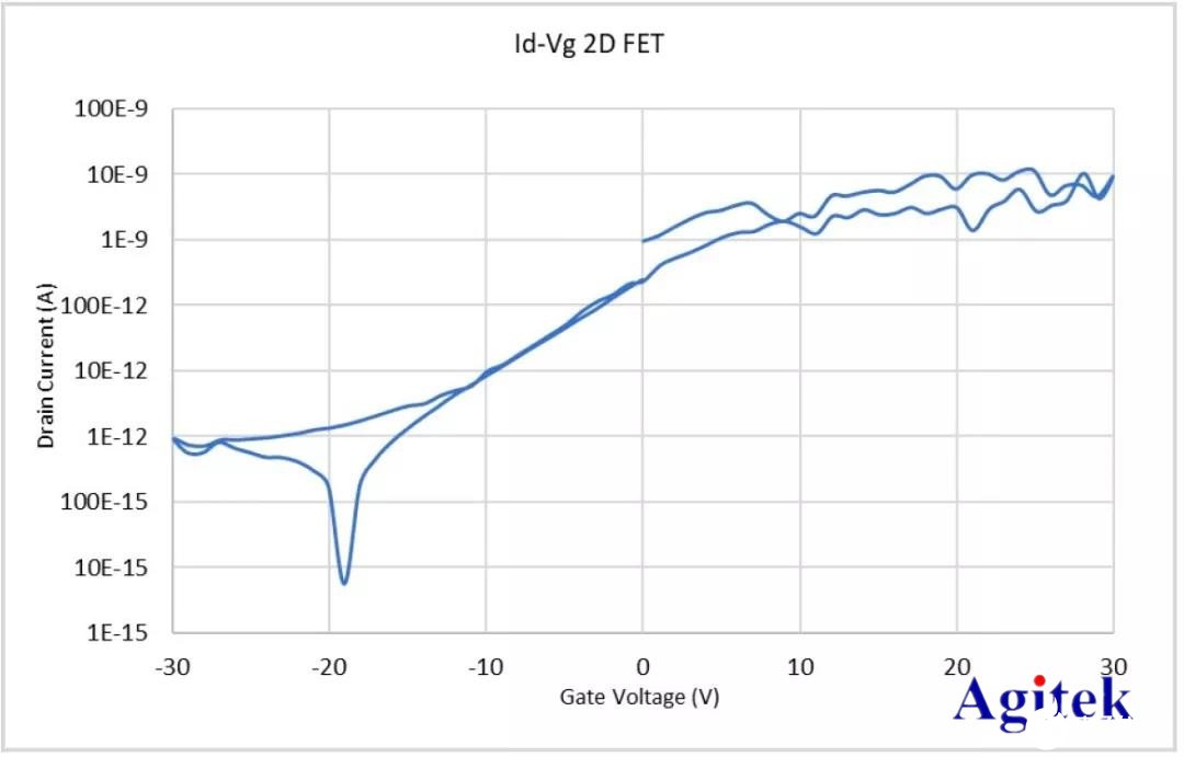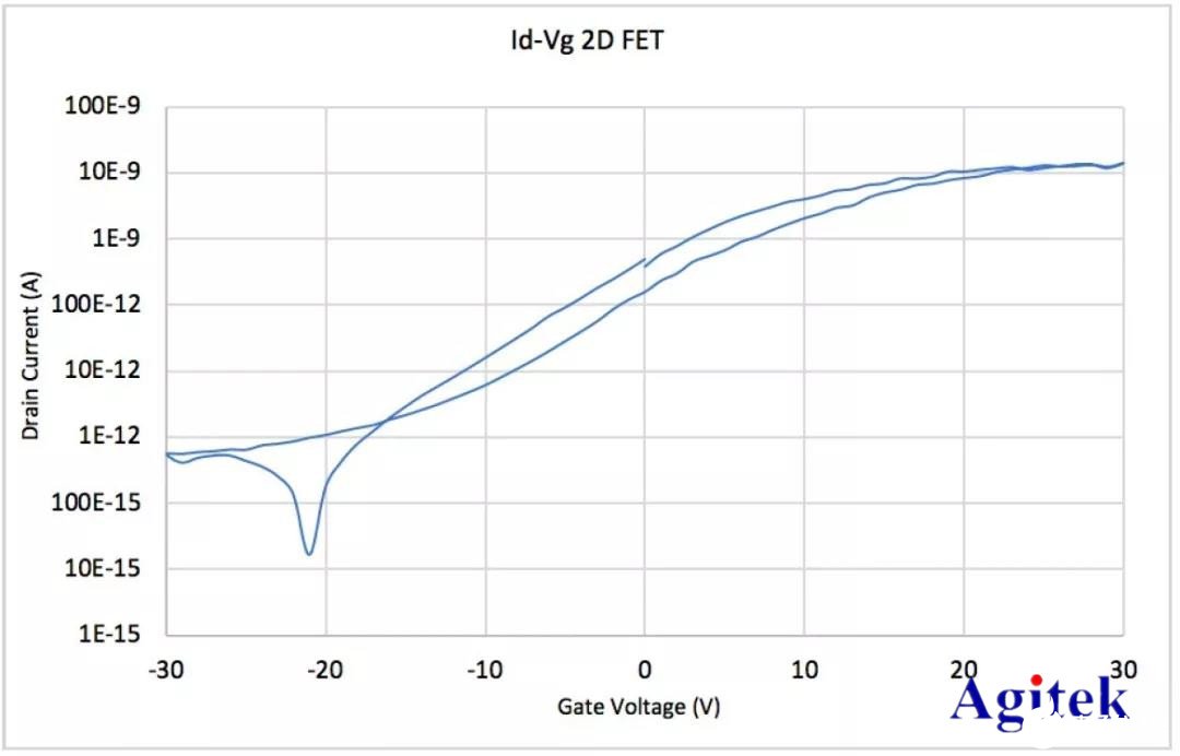 图9.传统SMU测得的2D FET Id-Vg磁滞曲线