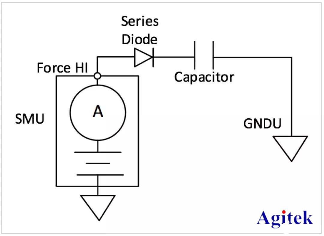 图11. 使用SMU和串联二极管测量电容器泄漏。