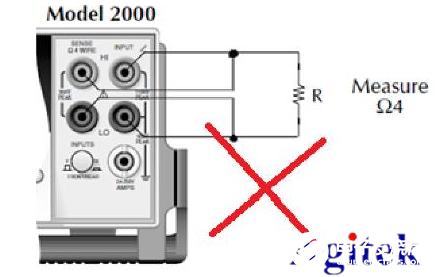 当使用四线测试法,需要连接input的HI、LO、Sense HI、Sense LO 四个端口(Sense HI 和Sense LO为取样引线接口)。如图4:
