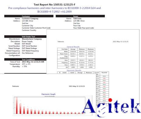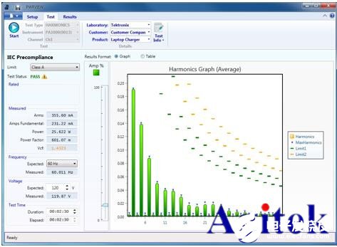PA1000采用50次谐波分析作为标配功能。除其它功率参数外,还可以同时分析谐波、THD等相关测量,并自动生成格式化测试报告。这些测试报告包括通过/失败结果、数据表、图形等所有用于证明设计性能并确保一致性测试实验室中的结果成功所需的内容。
