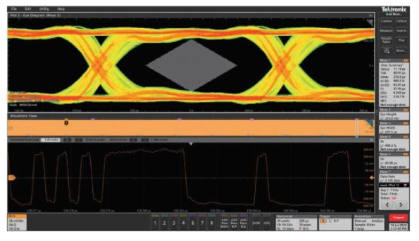图1. 眼图,顶部是模板测试,底部是对应的波形。