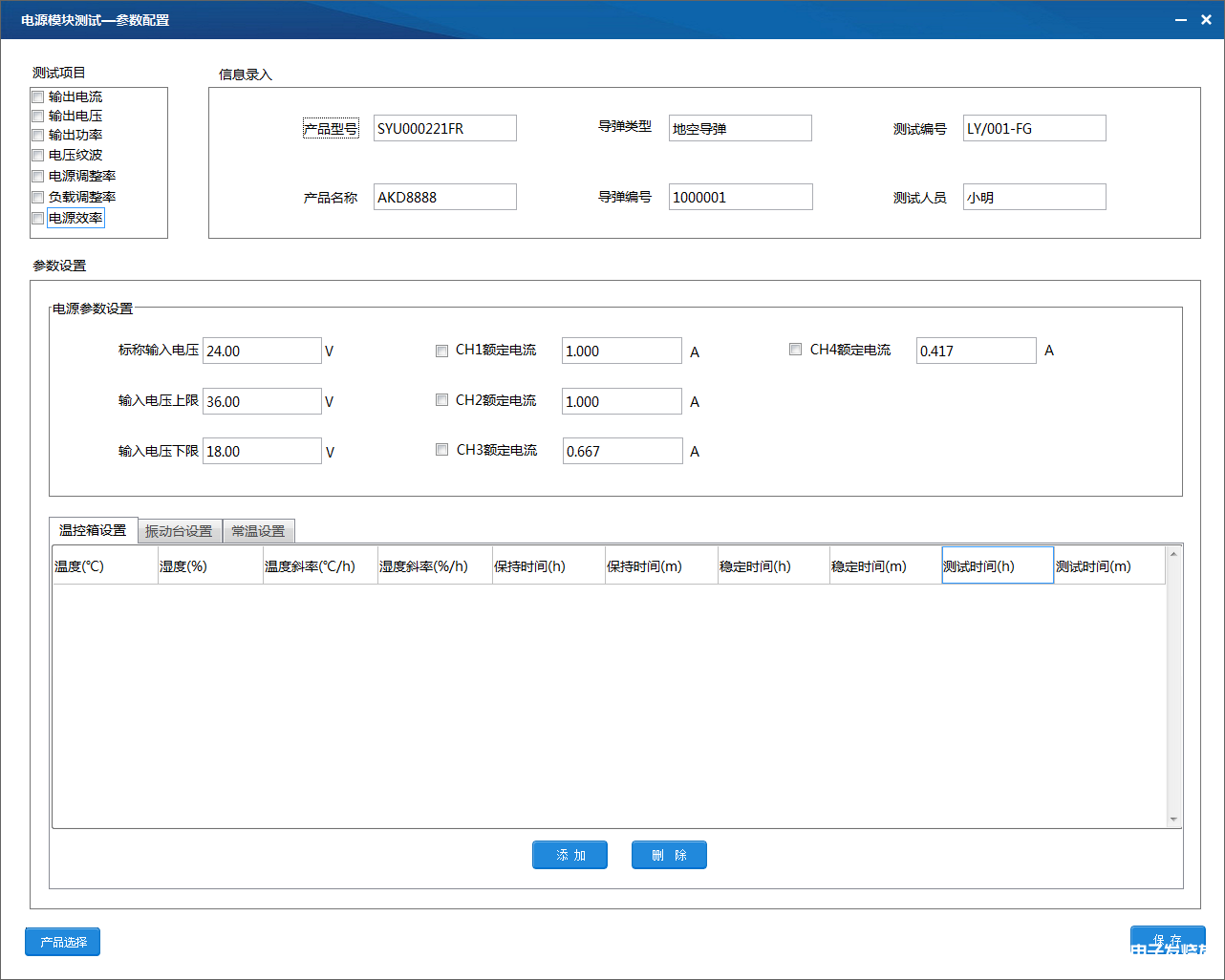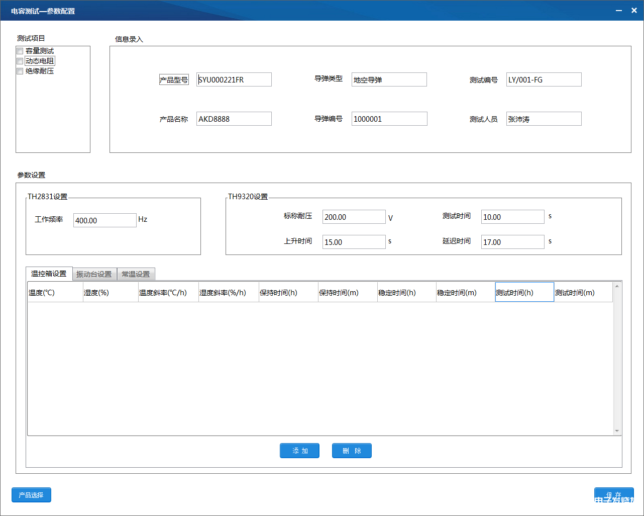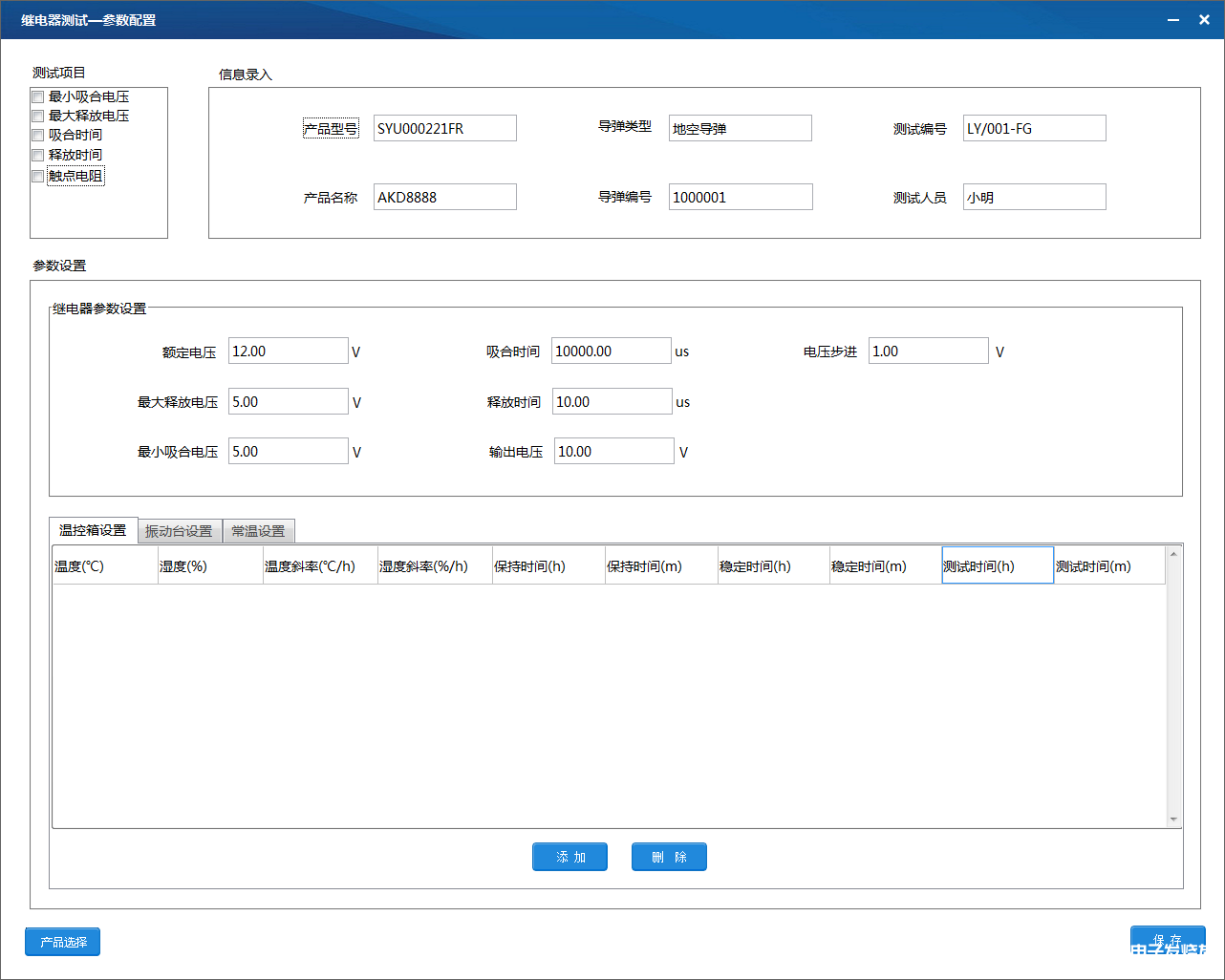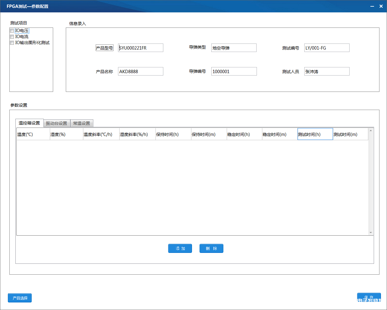 测试参数配置界面