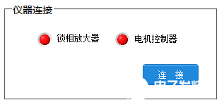 仪器连接界面:将计算机与步进电机控制器、RS860锁相放大器连接起来;仪器连接成功之后,点击系统界面的连接按钮,正常连接两个LED灯亮,否则灭。