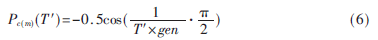 其中T′类似于模拟退火中的温度T,为进化代数的倒数;gen为设定的进化总代数。在进化初期T′较高,则Pc和Pm较大,以利于种群的多样性;随着进化代数的增加,T′逐渐减小,Pc和Pm渐进减小,便于个体向最优解靠近。