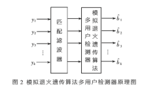 模拟退火算法与遗传算法相结合,取长补短,形成了模拟退火遗传算法。多用户检测是一个NP完备问题,将模拟退火遗传算法用于多用户检测中是可行的。图2为模拟退火遗传算法多用户检测原理框图,由滤波器和多用户检测器两部分组成。它有 k个输入和k个输出。