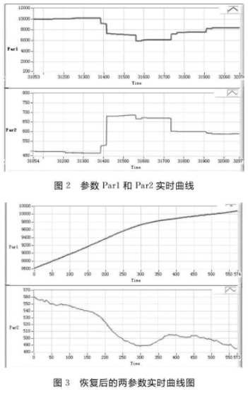 或者利用Chart的属性节点函数编程将Chart历史数据清空,同样地,客户端实时监控Chart图表曲线正常,参数Par1,Par2实时曲线如图3所示。